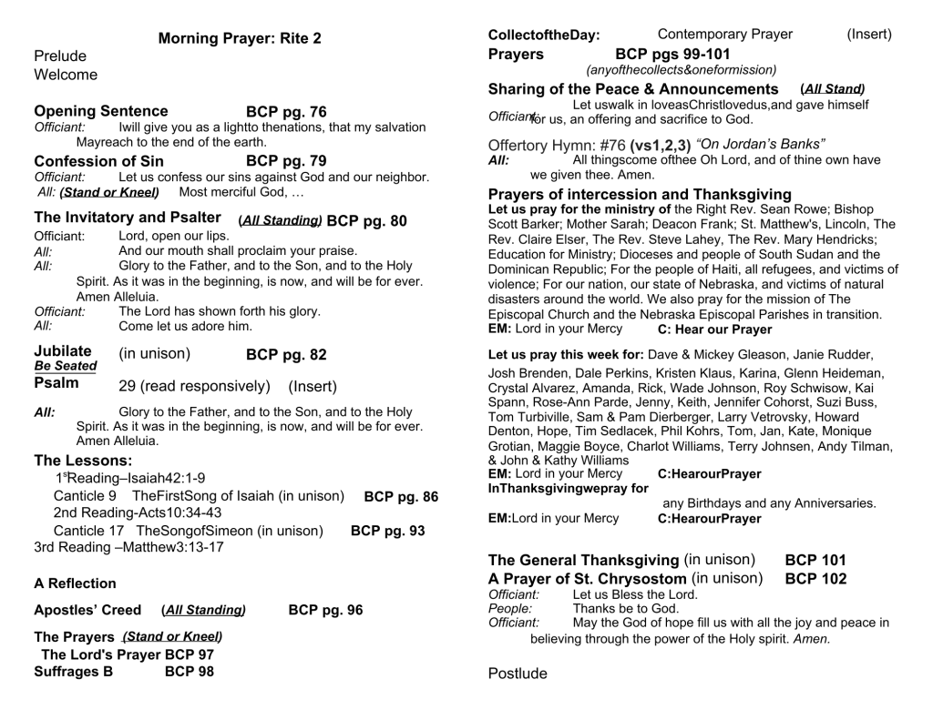 Weekly Bulletins Sunday Holy Eucharist @ 10:00 A.M. Jan 11, 2026 Share this: Click to share on X (Opens in new window) X Click to share on Facebook (Opens in new window) Facebook Like Loading...